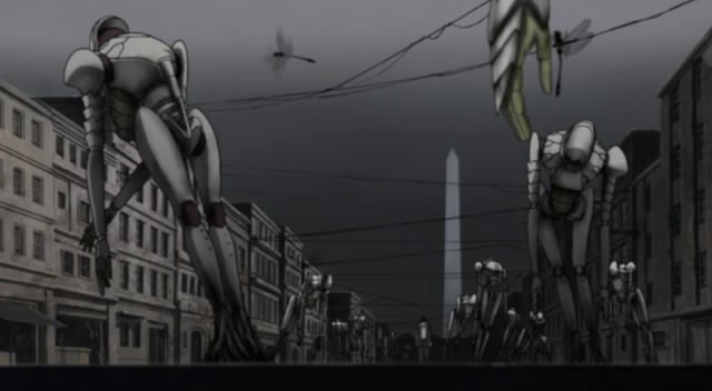 Mein erster Eindruck zu der Serie war sehr positiv und nicht ganz was ich erwartet hatte. Ich ging davon aus Texhnolyze ist einer dieser tiefgründigen Anime, wo ständig mega viel geredet wird. Solche Serien sind dann immer schwer zu verdauen, besonders da man auf Untertitel angewiesen ist. Für mich einer der Hauptgründe viele Animes schon ewig vor mir herzuschieben. Texhnolyzes erste Folge hatte dann aber einfach so gut wie gar keinen Dialog und ich fand das wirklich verdammt cool gemacht. Ich liebe es wirklich über alles, wenn ein Film oder eine Serie einem einfach Dinge zeigt, ohne es ewig erklären zu müssen. Es macht die Sache dann einfach spannender, weil man selbst dazu angehalten ist genau aufzupassen und seine eigenen Schlüsse zu ziehen. Das ganze nennt sich „Show, don’t tell“ und besonders Animes verwenden diese Technik leider viel zu selten, da in diesem medium gerne mal an Animationen gespart wird. Talking heads sind natürlich viel einfacher zu animieren, als wenn wirklich Dinge passieren. Darüber hinaus zeigt ein solches Vorgehen auch sofort hier wird eine ältere Zielgruppe erwartet, die nicht alles vorgekaut bekommen muss und dazu in der Lage ist, mitzudenken.