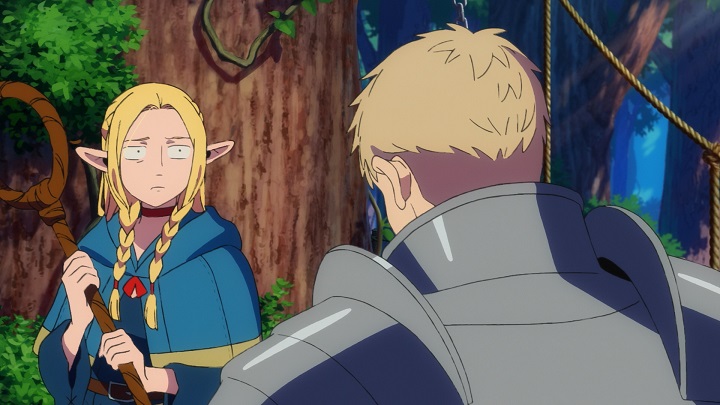 Ich finde besser hätte man den Anfang der Serie nicht gestalten können. Sofort werden alle wichtigen Dinge für die Serie etabliert. Die Maingruppe hat ein klares Ziel und eine tickende Uhr, die für Spannung sorgt. Auch das world building passiert sofort und völlig natürlich. Außerdem wird direkt ein Grund dafür erschaffen wieso die Monster im Dungeon zu essen ein wichtiger Bestandteil der Serie sein wird. Denn die Charaktere haben es eilig und konnten keine Vorräte aufstocken, also sind sie einfach darauf angewiesen die Monster vor Ort zu essen. Zusätzlich treffen sie dann auch noch auf Senshi, welcher sich darauf spezialisiert hat die Monster des Dungeons zuzubereiten.